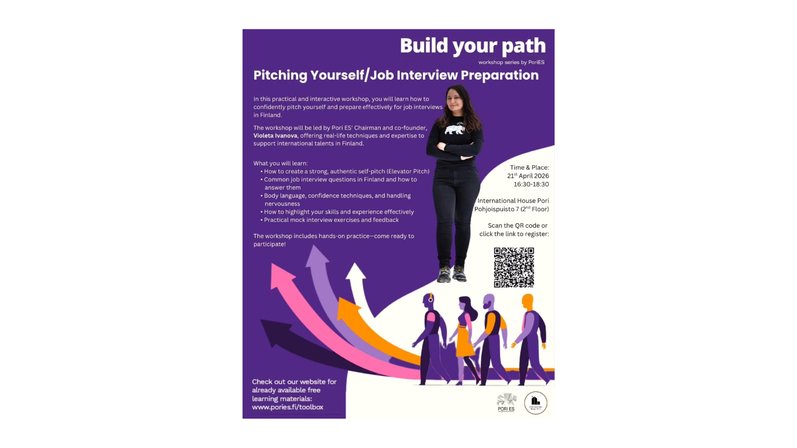 In this practical session you will learn how to craft an authentic self-pitch and prepare effectively for job interviews in the Finnish market. Expect interactive exercises, common interview questions, confidence techniques, and personalized feedback.