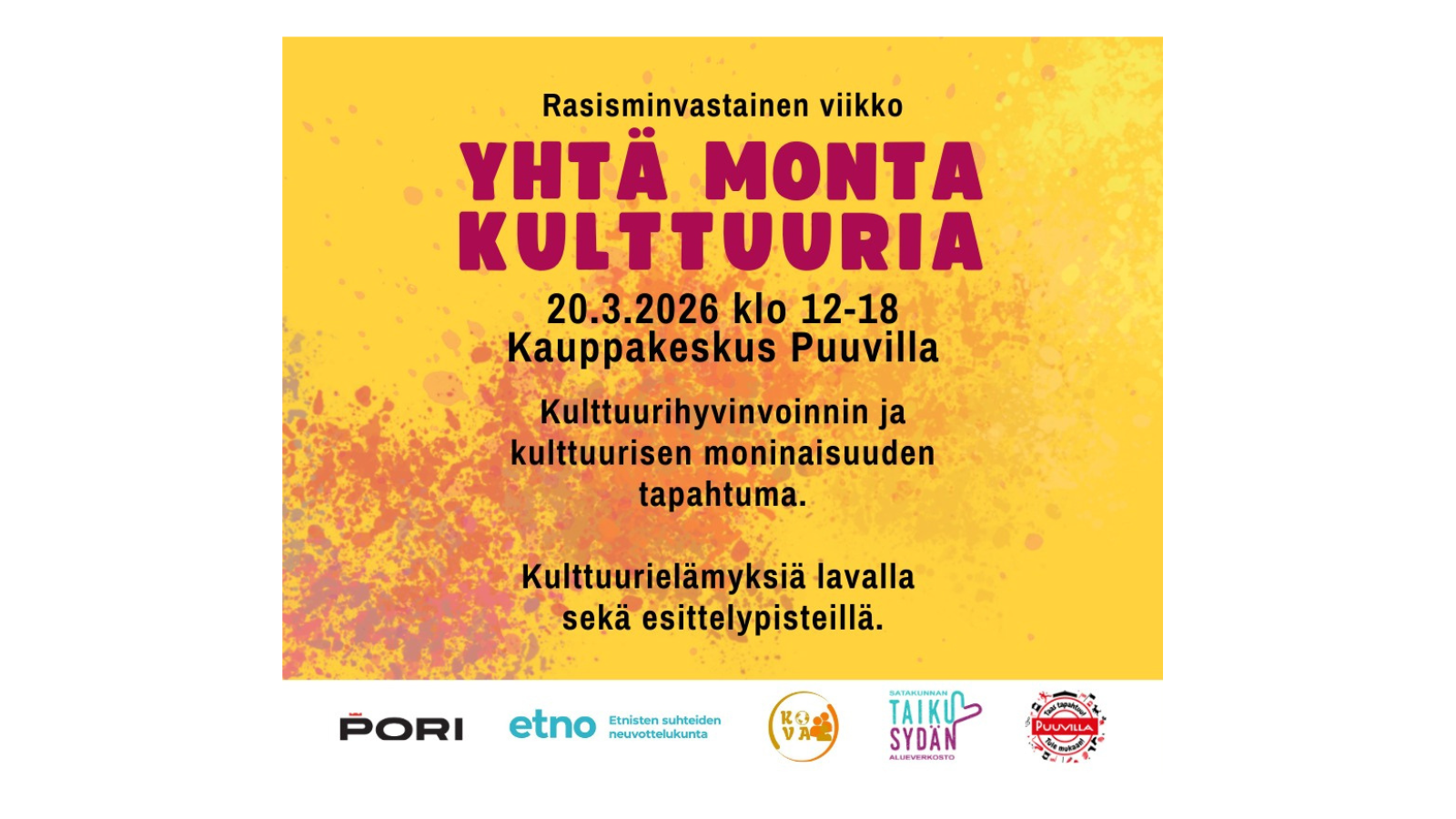 The event offers a unique opportunity to learn about the diverse possibilities of culture and its significance. The aim of the event is to promote cultural diversity and cultural well-being. The theme is Anti-Racism Week.